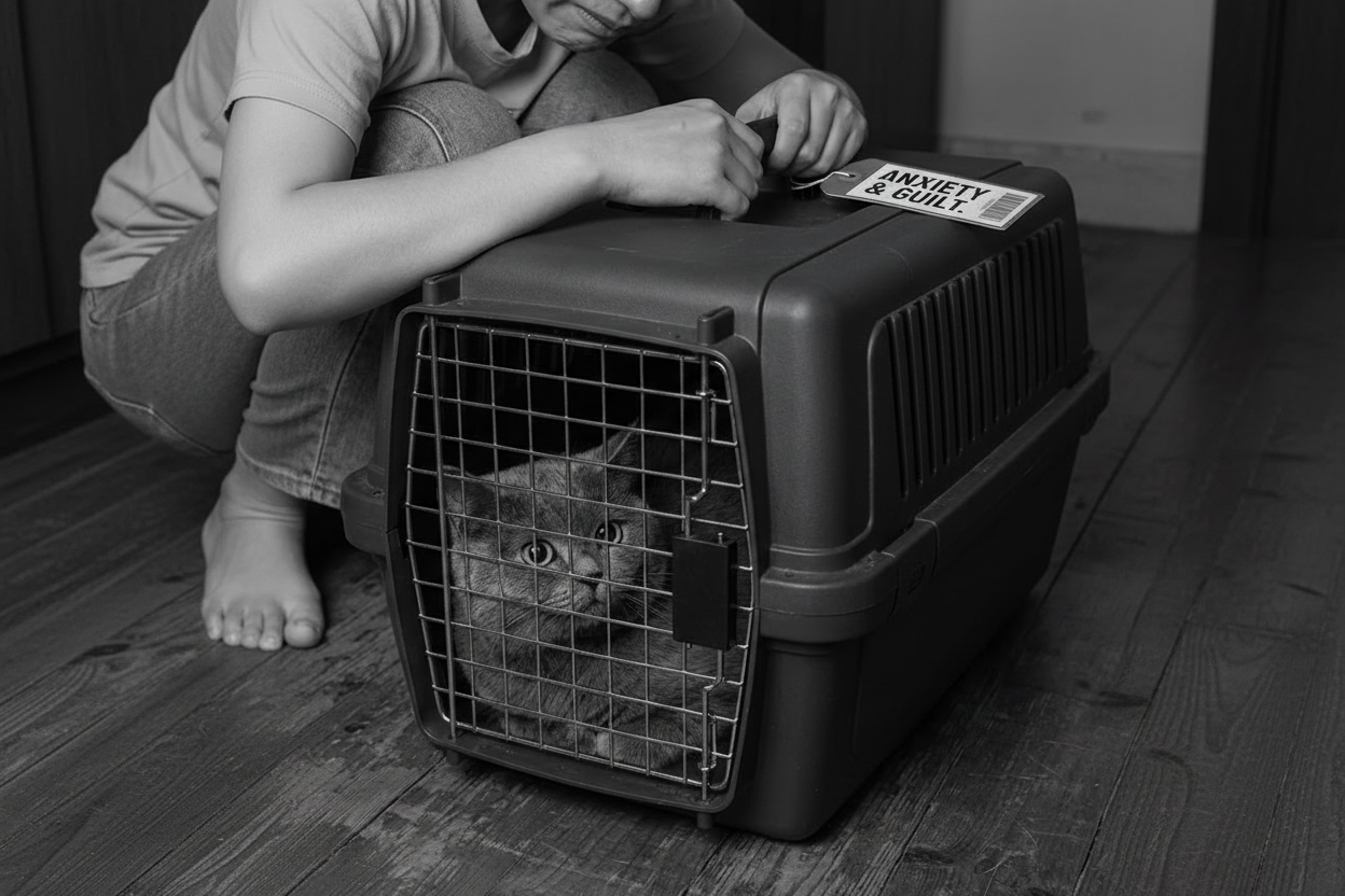 ❌ Old Way: Scratched arms, loud meowing, heavy lifting, and a miserable pet.